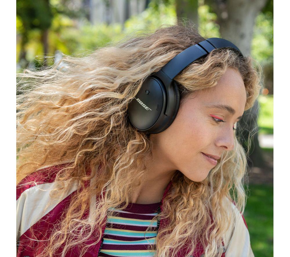 It's no secret that Bose knows noise-cancelling and on the QC SEs it gets even better. There are now six external mics to measure and cancel noise. Perfect for blocking out noisy neighbours while you work from home. There's even a noise-rejecting mic that isolates your voice from environmental sound so you can take calls in noisy surroundings. And when someone needs your attention or you're about to cross the street, simply press the aware mode button - you'll immediately hear everything loud and clear.Good to know- You'll get around three full work days from the 22 hour long battery - so don't stress about charging every day- No battery for the bus home? No worries - a 15 minute quick charge gives you 3 hours of use- Bluetooth 5.1 has great range and is super stable against interference from other devices- To hear your in-flight movie properly, just plug in the included 3.5 mm adapter cable- The volume-optimized Active EQ boosts highs and lows to give great audio quality no matter the volume- Music and podcasts will sound rich and true to life thanks to the TriPort acoustic design- The physical button controls on the earcups are tried, trusted and easy to use- There's a clue in the name... the QC's soft, lightweight materials are designed for all-day comfort- The folding design and included soft case makes them easy to pack away between wfh calls- It's easy to switch between Bluetooth sources, adjust the EQ and more on the free Bose Music app
