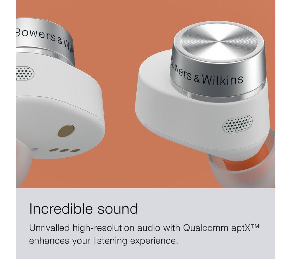 Never miss a beat with these Bowers & Wilkins Pi5 S2 earbuds. They've got True Wireless Sound, meaning there's nothing in between you and your favourite tunes. No wires, no fuss and a seamless connection between the left and right earbud. Bluetooth aptX technology means crystal clear sound all the time. Whether it's the latest summer slammer or a spine-chilling horror flick, you'll feel like you're right in the heart of the action. And thanks to Advanced Hybrid Noise Cancellation, you won't hear anything but your tunes – not chattering crowds, not roaring engines, just pure, unadulterated sound.Good to know- The wireless charging case tops up the battery and protects your earbuds when you're not using them- Get back to your music quickly with Quick Charge – 15 minutes of charging gives you 2 hours of listening time- Call upon your favourite virtual assistant with a push of a button- With up to 24 hours of battery life you can enjoy your epic entertainment all day- Stream music directly from your favourite music services with the Bowers & Wilkins Music App