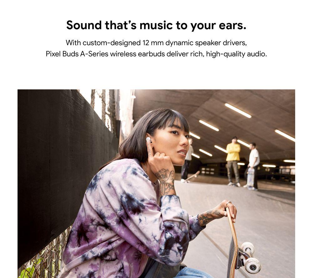 Great sound with no cables Get the most out of your music with the Google Pixel Buds Wireless Bluetooth Earphones. Connect seamlessly with Bluetooth and enjoy wireless freedom. Plus, they'll pair with your Pixel phone with just a tap. The custom-designed 12 mm dynamic drivers provide rich, high-quality audio to work their magic on your playlist. So you can enjoy your songs the way they were meant to be heard - with deep bass and clear vocals. Take calls wherever you are Enjoy crystal-clear hands-free calls - even when it's windy. The beamforming mics and voice accelerometers focus on your voice to eliminate background noise. So Grandma can hear you loud and clear. Hey Google, where am I headed? Play music, find a route or make calls without touching your phone - Google Assistant is here to help. Talking to locals on holiday has never been easier. Whether you're ordering dinner or asking for directions, the Google Pixel Buds provide real-time translation right in your ear.