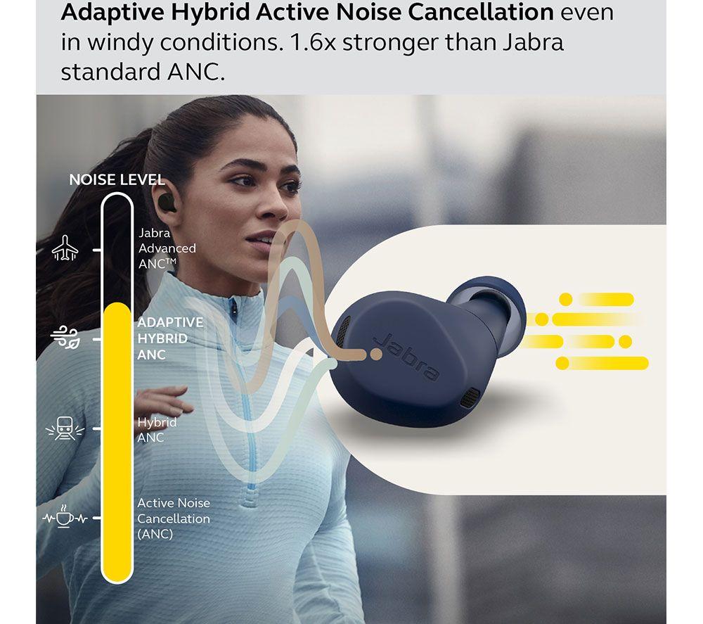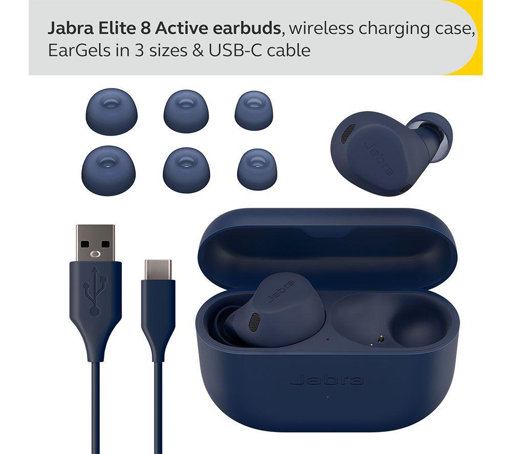 The Jabra Elite 8 Active are made of tough stuff. They've even been put through their paces with military-grade testing, proving they can stand up to the harshest environments. From extreme heat to shock impact, dust storms to water exposure, these earbuds are as tough as they come. Jabra's ShakeGrip design means they stay snugly in place, even without ear wings. Sprint for that bus or run that extra mile – they won't budge! They also come equipped with Adaptive Hybrid Active Noise Cancellation (ANC) technology. It tunes out the world around you, giving you crystal-clear sound whether you're jogging through a park or taking a call on a bustling platform.Good to know- Sound feels like it's happening all around you with Spatial Sound powered by Dolby Audio – it makes movies and games much more immersive- Prefer to run without your phone? These buds offer a solid and stable connection to your smartwatch, so you can carry on listening- Power through even the most gruelling workouts without a hint of battery anxiety and enjoy a solid 8 hours of non-stop music- On the move? Keep the beats flowing with the wireless charging case, which offer an extra 24 hours of power- Six perfectly positioned microphones cleverly distinguish between background noise and your voice for crystal-clear calls on the go- Seamlessly switch between devices with Bluetooth Multipoint - go from your watch to your phone or laptop without needing to reconnect