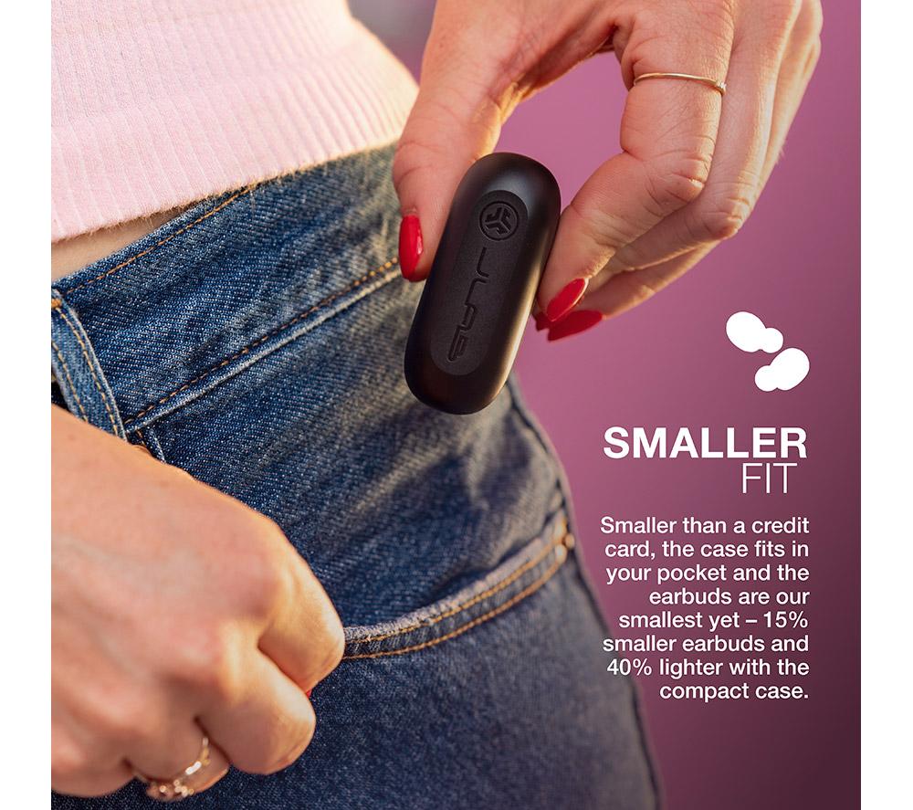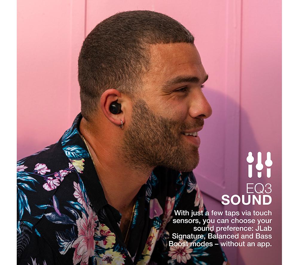 Good to know - With these JLAB wireless earbuds you can enjoy your music for up to 32 hours - 8 from the buds and 24 from the case - The charging case is tiny, lightweight and has a built-in USB cable, so it'll all fit nicely in your pocket - By tapping the earbuds you can cycle through 3 EQ modes to suit your playlist - no app necessary - The touch controls let you change volume, control music or calls, and summon your voice assistant - Thanks to the IPX4 rating you can be sure that the earbuds will survive a rainy day or a sweaty gym session - You can use just one earbud and leave the other one in the case - handy for phone calls