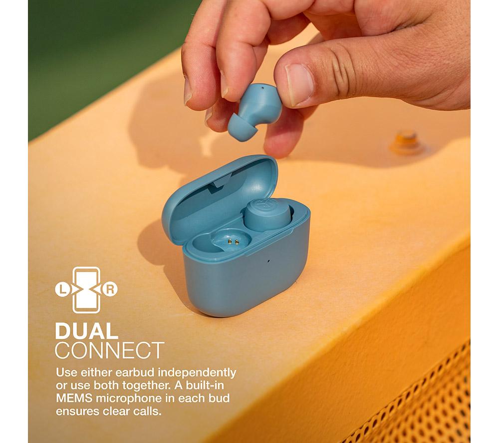 Good to know - With these JLAB wireless earbuds you can enjoy your music for up to 32 hours - 8 from the buds and 24 from the case - The charging case is tiny, lightweight and has a built-in USB cable, so it'll all fit nicely in your pocket - By tapping the earbuds you can cycle through 3 EQ modes to suit your playlist - no app necessary - The touch controls let you change volume, control music or calls, and summon your voice assistant - Thanks to the IPX4 rating you can be sure that the earbuds will survive a rainy day or a sweaty gym session - You can use just one earbud and leave the other one in the case - handy for phone calls