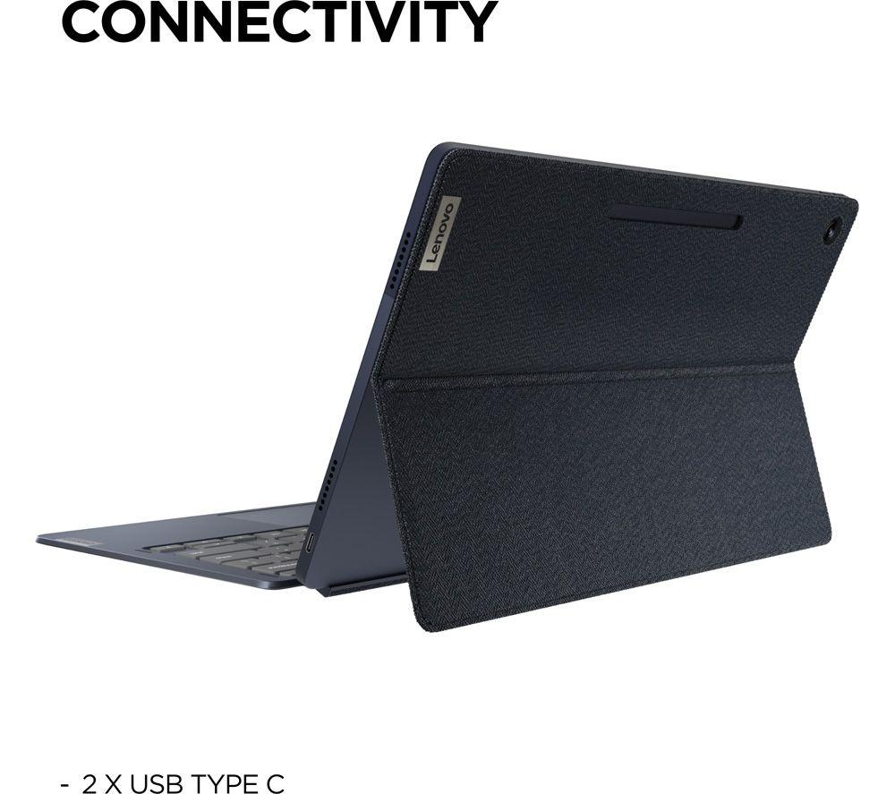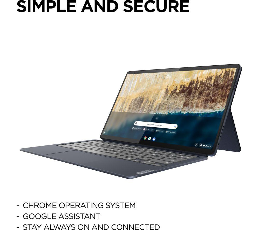 \nThe Duet combines the speed and security of a Chromebook with the fun and flexibility of a tablet. ChromeOS gives you access to all your favourite apps and games. And when it's time to get some work done, just snap on the detachable keyboard and get typing.The tablet weighs just 700 g and even with the keyboard and stand cover attached, it's slim and light enough to take with you anywhere.Good to know- Jot down your notes, sketch out ideas and edit presentations with the included stylus- The OLED touchscreen is sharp, bright and full of colour – great for both typing documents and binging shows- With up to 15 hours of battery life, you can stream and surf all day without charging- Multitask all you want with the Qualcomm Snapdragon 7c Gen 2 processor and 8 GB of RAM- Enjoy smooth video calls with the Full HD webcam and dual array microphones- 256 GB of storage gives you enough space for all your apps and files- Two USB Type-C ports let you connect an extra monitor or a hard drive\n
