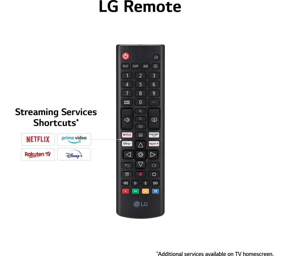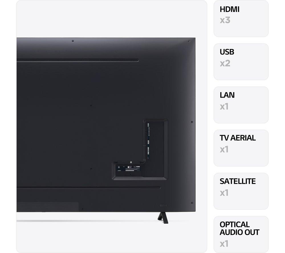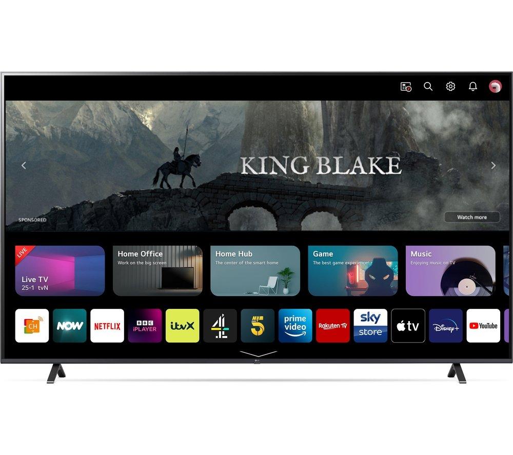This LG UR78's 4K Ultra HD resolution means your favourite blockbusters look sharp and vibrant with incredible detail. Its High Dynamic Range (HDR) means more accurate colours, improved brightness levels and a deeper contrast. Those movie monsters just got a lot more menacing. With AI Sound, you'll feel the action all around you. It transforms 2-channel audio into virtual 5.1 surround sound for that movie theatre experience, only without the never-ending trailers. And Filmmaker Mode turns off any picture processing that can make movies look unnatural, so you can enjoy them the way the director intended.Good to know- Game Optimiser fine tunes your settings, so your games look and sound their best and run smoothly – your enemies don't stand a chance- Its modern, slim design will instantly become the focal point of your room and looks great on the wall or a TV cabinet- AI Acoustic Tuning uses the mic on your remote to tweak the TV's audio settings based on the size and shape of your room- Access all your favourite apps like Netflix, Prime Video, Disney+ and loads more via LG's webOS smart platform________________________________Please note: Some apps & services (including tuner) are only available in the UK. Apps & services may be removed or no longer supported by third party content providers at any time. Some apps & services may not be available at launch and may require a firmware update before becoming available. Some services require an account and/or subscription fee.