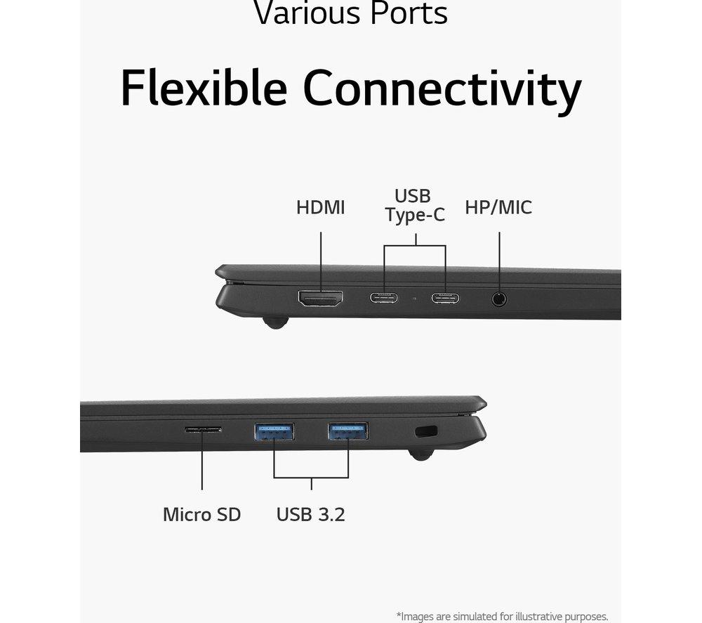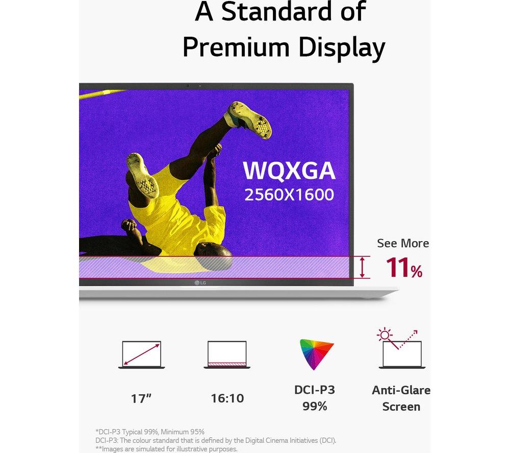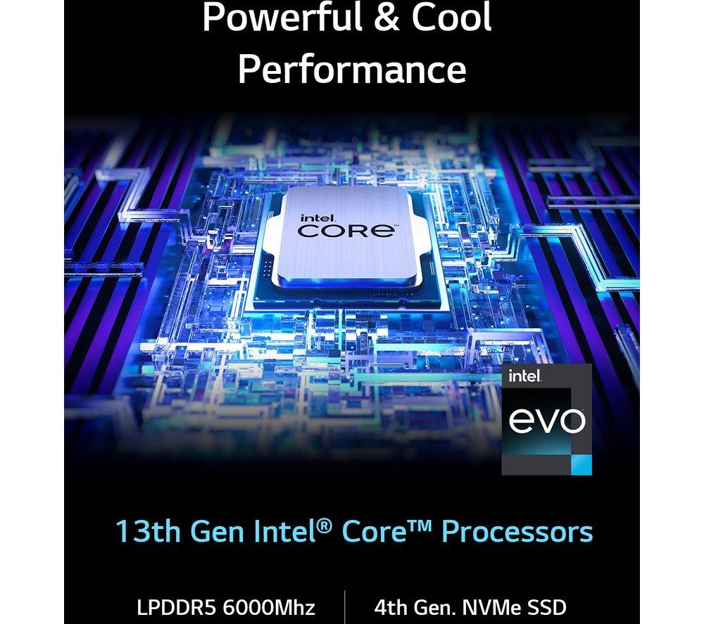 The LG gram 17 is one lightweight heavy hitter that can give any workflow a knockout blow. It's packing a 13th Gen Intel® Core i7 that won't flinch at heavy-duty tasks like video editing. And at just 1.35 kg, it's perfect for digital nomads. The battery lasts up to 21 hours, which is frankly astonishing and longer than any flight. And it can take a punch, too. The gram passed military-grade durability testing, so you can be sure it can handle living in your backpack. Good to know - There's no catch to the light weight – you still get a big, bold and beautiful 17\
