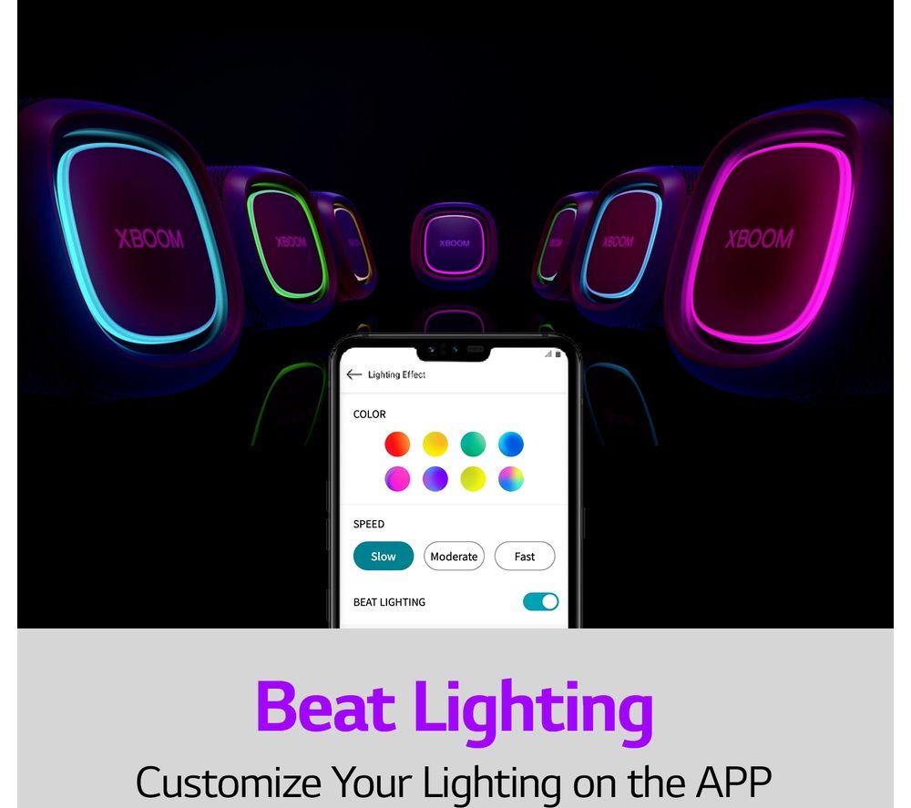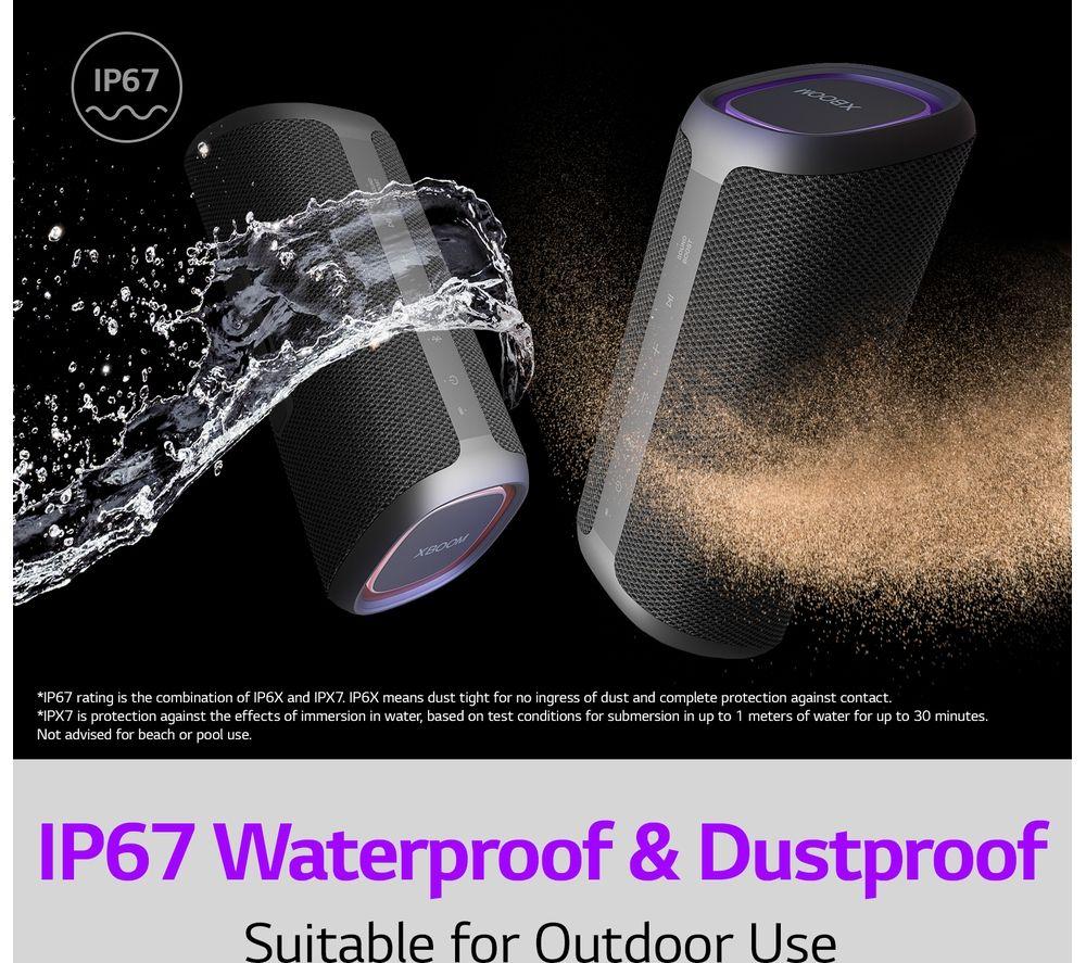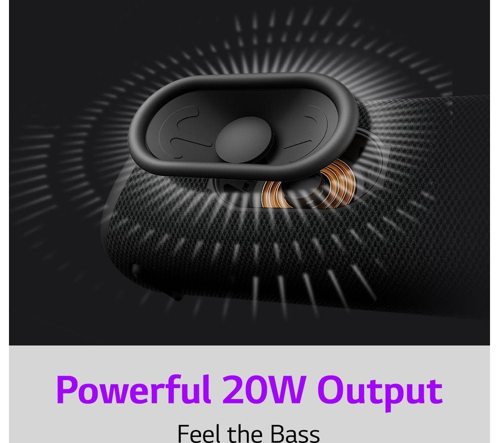 Small yet mighty, the LG XBOOM Go XG5 brings the party vibe with 20 W of sound output. There's a track-type woofer and LG's Bass Enhancement algorithm for bass you can hear and feel – even when you turn the volume down low. LED lighting adds to the party vibe – play around with 16 million colours and enjoy the rainbow.Good to know- If you need to fill a large space, hit the Sound Boost button to widen the sound field- It's IP67 rated – aka dustproof and waterproof – so bring it to the beach or pool party- With up to 18 hours of battery life, the music can keep going well into the night- Chat handsfree – and make sure everyone got their invite - with the built-in speakerphone