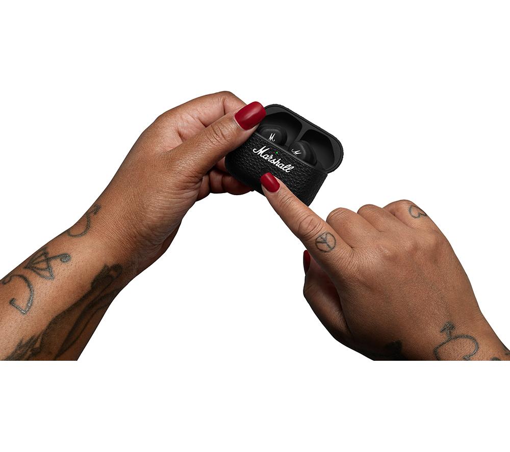 • Box contents :- Marshall Motif II Wireless Bluetooth Noise-Cancelling Earbuds- Ear tips (S, M, L)- USB Type-C charging cable- Quick start guide