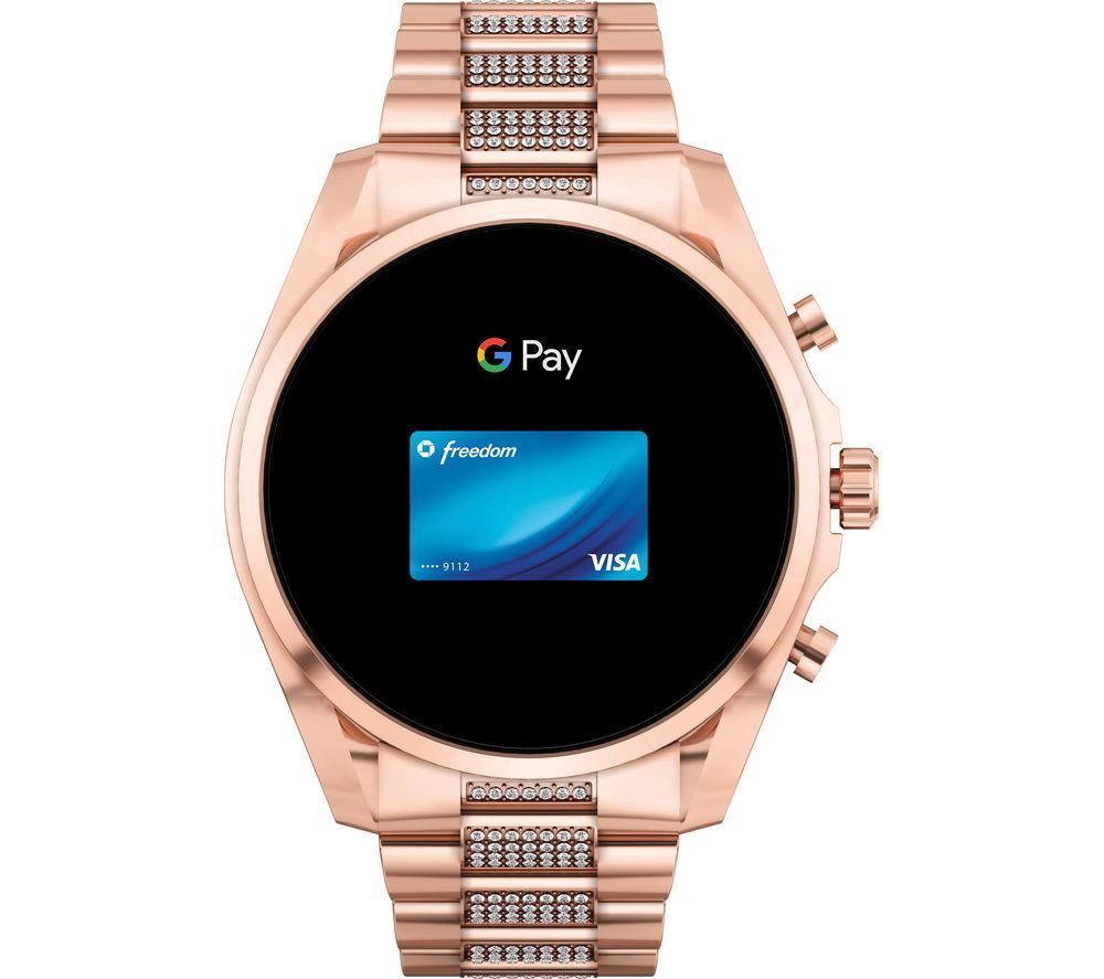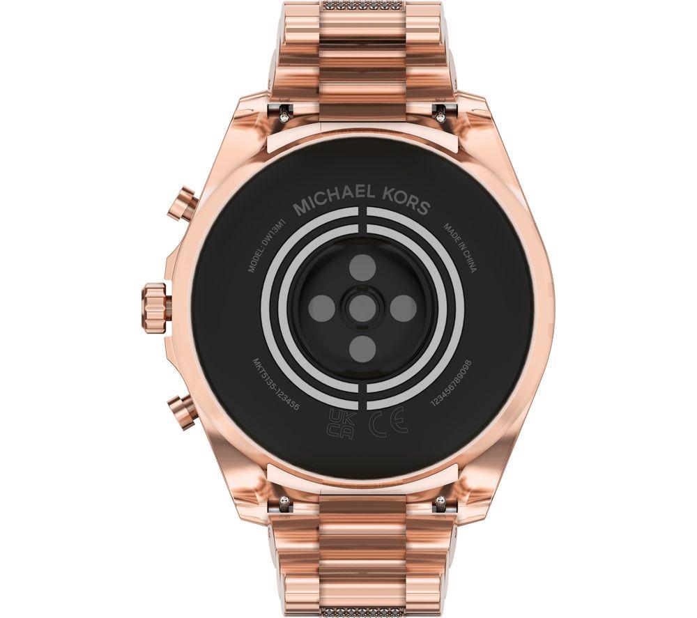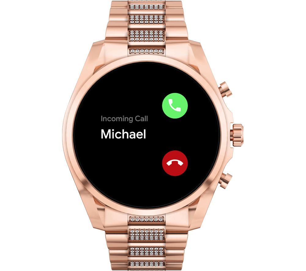 View smartphone notifications and health tracking stats straight from your wrist with the Michael Kors Bradshaw Smart Watch. What we love - Stay in touch with friends and family with voice calling and smartphone notifications - Health and fitness tracking makes it easy to monitor your workout progress - Buy a quick coffee between meetings with Google Pay contactless payments Good to know - Comes with lots of preloaded apps, including Spotify and Google Fit - Ask Google Assistant to send messages or skip the track you're listening to - Swimproof design means you can take it to the pool - Get accurate distance tracking with the built-in GPS- Customisable display – there are thousands of watch faces to choose from- Personalise the watch to suit your style thanks to the interchangeable strap - Pair the watch to your phone using Bluetooth and WiFi connectivity - 24-hour battery life that can be extended with Multi-day mode