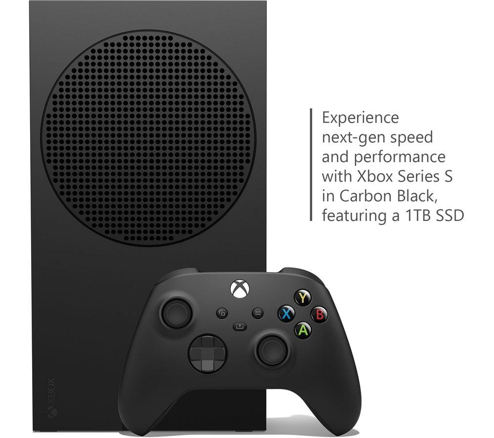 Next gen performance in the smallest Xbox yetExperience a new generation of gaming at a lower price point with the Microsoft Xbox Series S.Nearly 60% smaller than the Xbox Series X, it's the tiniest Xbox ever. Yet it still delivers high frame rates up to 120 fps and speedy loading times - just what you need for intensive gaming.Play the latest releases in Quad HD at 60 fps, while the Xbox Velocity Architecture powered 1 TB custom SSD storage allows you to seamlessly switch between games.Introducing the new Xbox Wireless ControllerWith its sculptured surface and refined geometry, the new Wireless controller is a thing of beauty. Take aim with the textured grip and hybrid D-pad and share your gameplay at the click of a button. Pairing with the Xbox Series S in seconds, you can seamlessly switch between compatible consoles, PCs and mobile devices.Your old favourites look better than everThere's no need to let your old Xbox games get dusty. As well as being ready for the next generation of games, the Xbox Series S features the revolutionary new Xbox Velocity Architecture. It provides improved loading times, stable frame rates and higher resolutions to thousands of your favourite Xbox One, Xbox 360 and even original Xbox games.