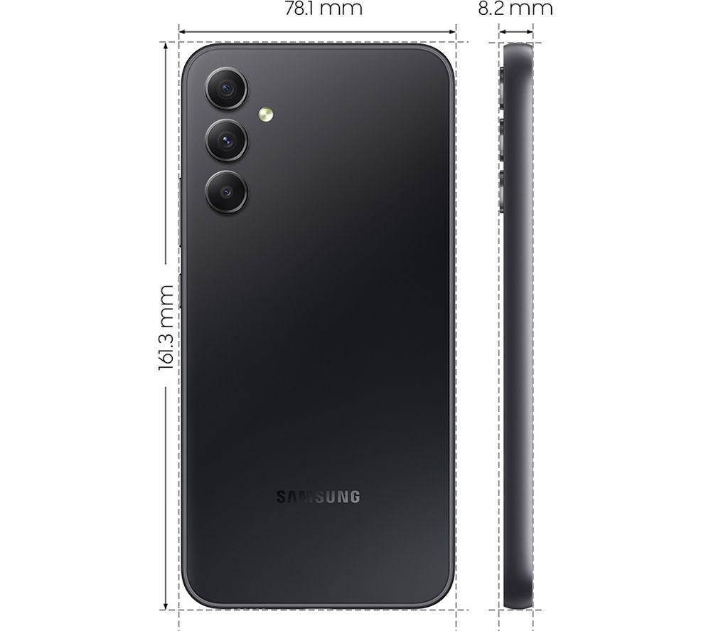 With the Galaxy A34 5G, your eyes will be glued to the Full HD+ AMOLED display. Its 120 Hz refresh rate and stunning colours will make your movies and games come to life in your hands. And don't worry about trying to find shade, because the screen gets super bright. To help you capture memories in amazing detail, there's a 48 MP triple camera system on the back. Plus, with the massive 5000 mAh battery, you can take on the day without worrying about running out of juice. Good to know - The 8-core MediaTek Processor will easily power through any app or game - With 8 GB of RAM you can multitask in several apps at once without slowdowns - Sunset doesn't mean the fun has to stop - Nightography lets you take clear pics and videos, even in the dark - 5G connectivity lets you stream films and shows on-the-go – even when you're on the bus to work - The 13 MP front camera is perfect for selfies with your friends, and Zoom calls with your family - Facial recognition and fingerprint scanning keep your personal files safe, secure and for your eyes only - Splashes or rain showers don't need to worry you – the A34 has an IP67 rating - 256 GB of internal storage gives you plenty of space for all your important apps, photos and videos