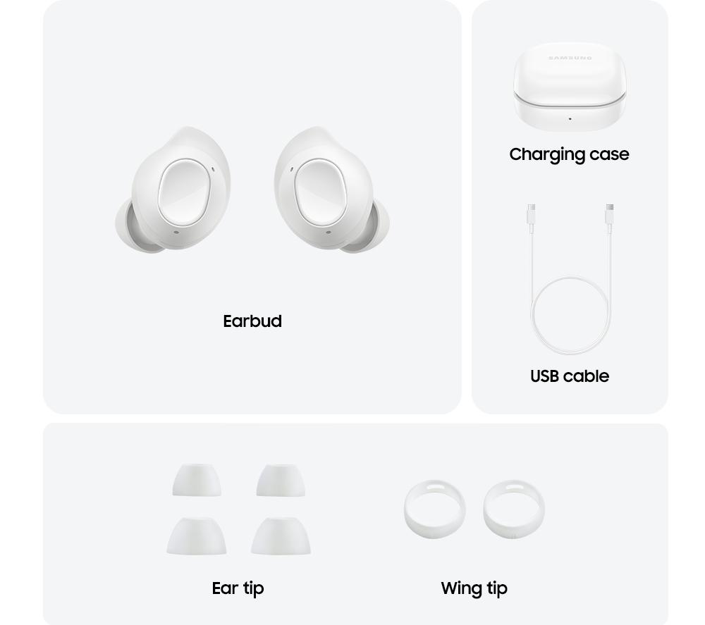 Hear more of what matters with these Samsung Galaxy Buds FE. Active Noise Cancelling filters out all of the annoying distractions around you, so you can focus on your music or podcast. But when you need to be more present, Ambient Noise lets the outside world come flooding back in – never miss a train announcement again. They're comfy too. The ergonomic design fits snugly in your ears and the wing-tips make sure they stay put during even the most intense workouts. You may even forget you're wearing them. And with up to 27 hours of battery (including the charging case) you can vibe to your favourite playlists from sunrise to sunset.Good to know- Go from watching a movie on your tablet to taking a call on your phone with Auto Switch- Misplaced your buds? Track them down with the SmartThings Find app on your phone- Enjoy crystal clear phone calls thanks to AI technology which filters out background noise- Connecting to your devices is as easy as ABC – just open the case and tap to connect, pair and sync- Turn on Smart View and they automatically sync to your compatible Samsung TV (sold separately)