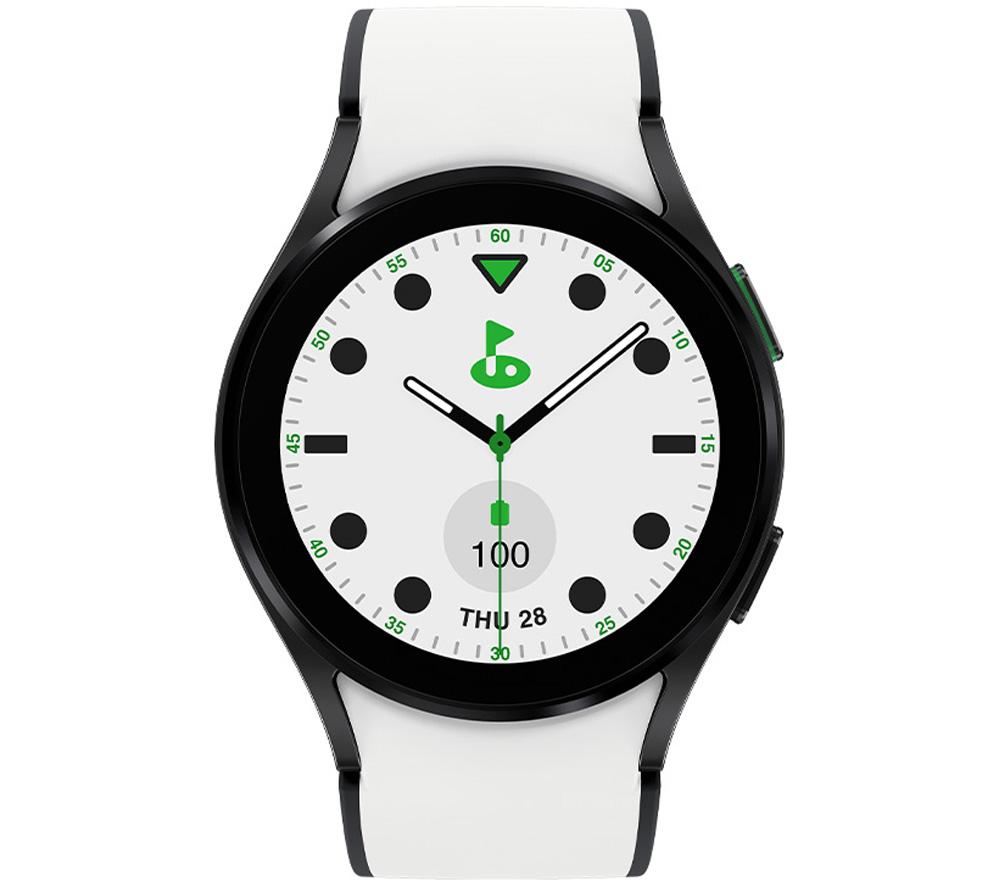 Bring your A game to the green with this Golf Edition of the Samsung Watch5. Scope out the course before you tee off with Smart Caddie. Search from over 40,000 courses worldwide and keep a fully zoomable map right on your wrist. This watch has a few other tricks up its sleeve too. Align yourself with the flagstick using the Pin Direction compass and log how far your ball travelled with Shot Tracking. It'll even suggest the best club to grab. It looks the part too with a matching two-tone band, exclusive watch face, and green home button.Good to know- A handy score input screen pops up automatically after each hole, so you won't forget to keep track of the score- Voice Guidance can walk you through the course information as you play- Guide for Course Targeting lets you plan your shot with touch-targeting, shot history, and remaining distances to the green- It can help you keep an eye on your health by monitoring important metrics, like heart rate, blood pressure, and body composition- The sapphire crystal glass provides excellent protection against scratches- With up to 40 hours of battery life, you won't lose any progress mid-game- Buy your morning coffee with a tap of your watch using Samsung Pay or Google Wallet___________________________________________________________________________Please note: Samsung Pay is not currently available in Ireland.
