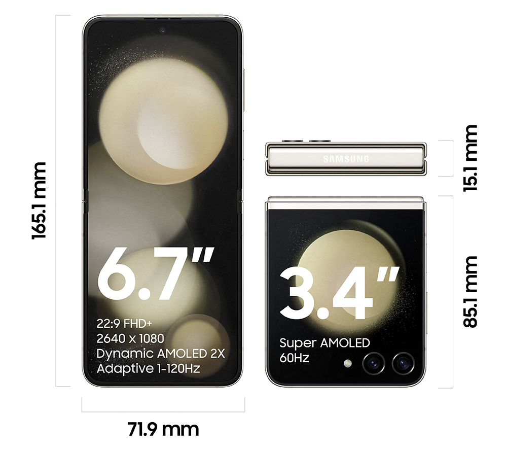 • Screen size :- Main: 6.7'- External: 3.4'