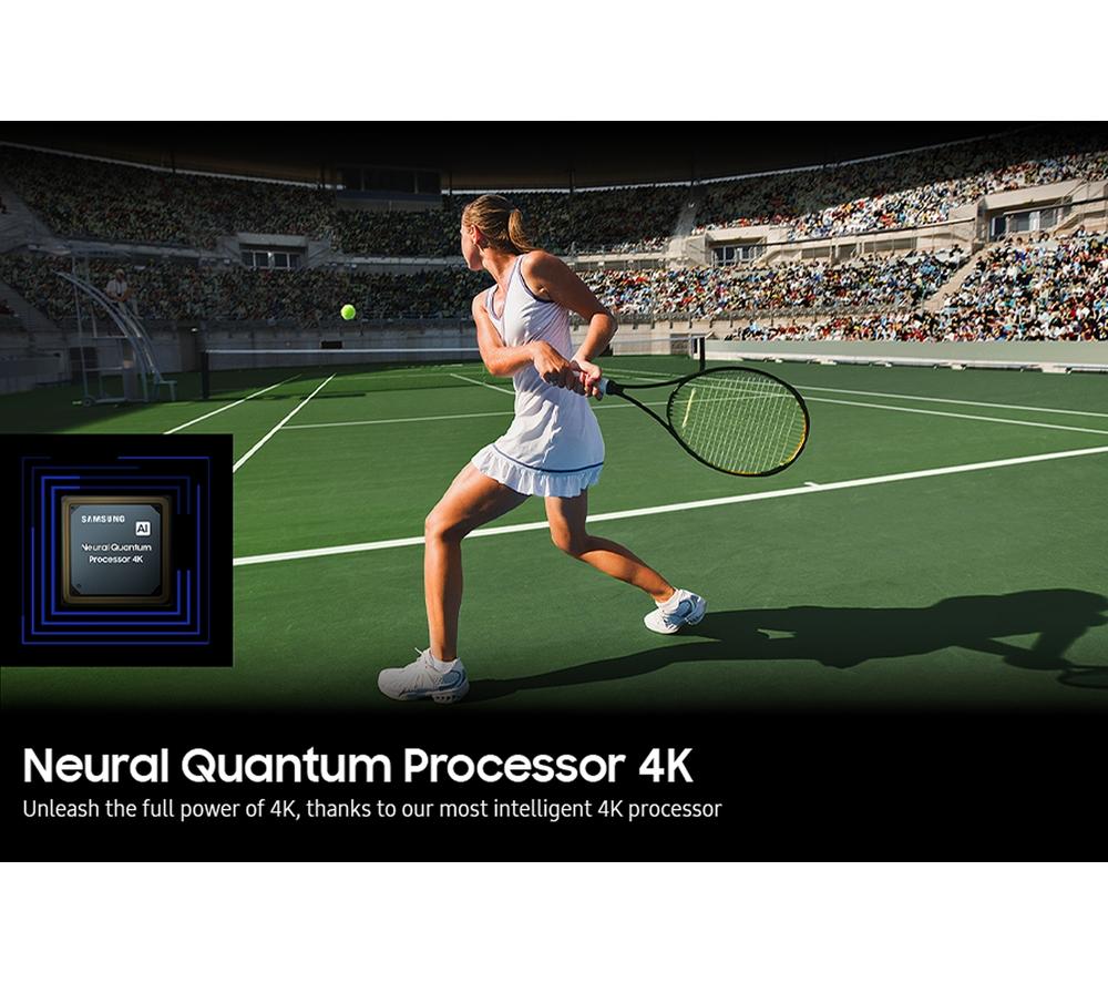 Your content gets the VIP treatment with this Samsung TV. Quantum Dots transform light into lifelike, accurate colour for natural looking scenes. The sky is brighter, the grass is greener, and the details are clearer. It's even been given the thumbs up by Pantone (and they know a thing or two about colour). The Neural Quantum Processor 4K is the brain of the TV. It optimises the brightness, contrast, resolution and sound of everything you watch into 4K. It's able to do this on the fly using AI and 20 neural networks while learning all the time. Clever, right? And Quantum HDR+ throws you right into lifelike action and lets you see every little detail in mind-boggling clarity - those movie monsters just got a whole lot scarier.Good to know- With Direct Full Array, annoying halos are a thing of the past - instead you get the perfect balance of bright whites and dark blacks- Dolby Atmos uses the TV's speakers to create an immersive surround sound effect – you'll love how incredible everything sounds- Get the most out of your next-gen console with Motion Xcelerator Turbo Pro – you won't miss a moment thanks to a 120 Hz refresh rate and ultra-low input lag- The Boundless Design is made to look good from any angle with nearly no bezel and a clean back- Get binging on a huge collection of films, TV shows, and all your favourite catch-up apps on Samsung's smart TV platform- Cartoons, classic movies and even the nightly news get an upgrade to glorious 4K thanks to AI Upscaling- Every seat is the best seat in the house thanks to the anti-glare screen with ultra-wide viewing angle________________________________Please note: - Samsung Account required to access network-based smart services and apps. If you choose not to log-in, you will only get connection to terrestrial TV (applicable to devices with tuners only) and external devices, e.g. via HDMI. - Some apps & services (including tuner) are only available in the UK. Apps & services may be removed or no longer supported by third party content providers at any time. Some apps & services may not be available at launch and may require a firmware update before becoming available. Some services require an account and/or subscription fee.