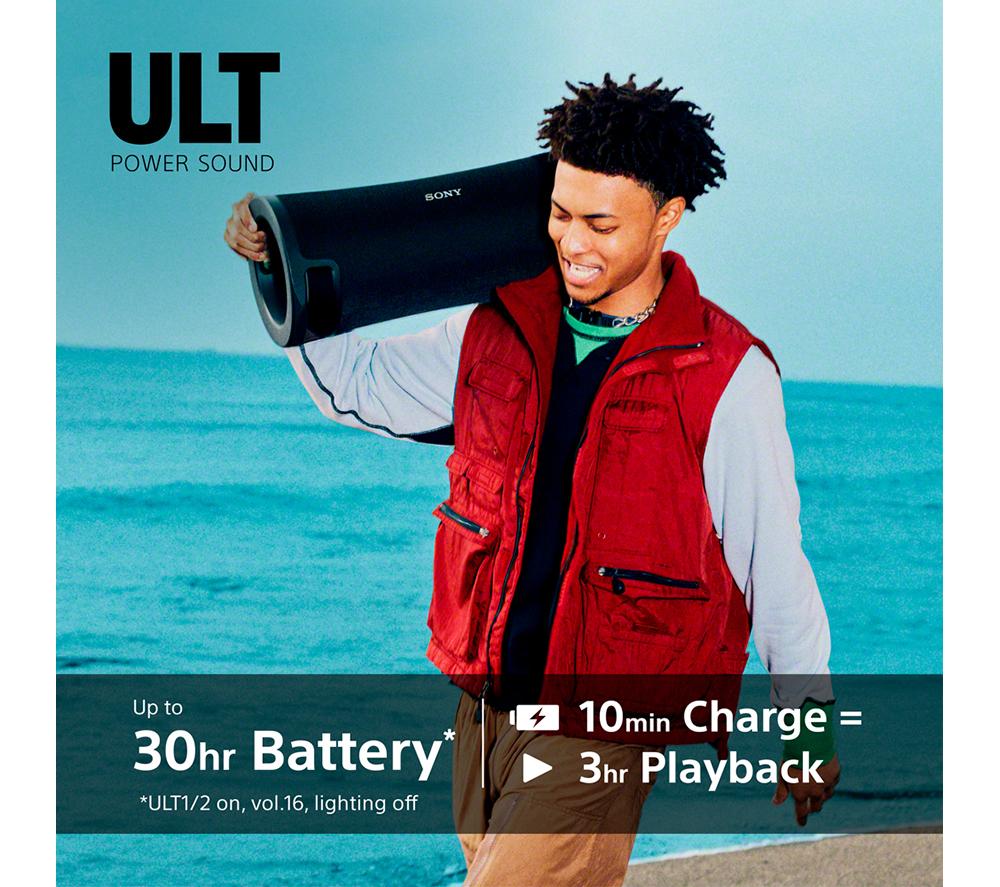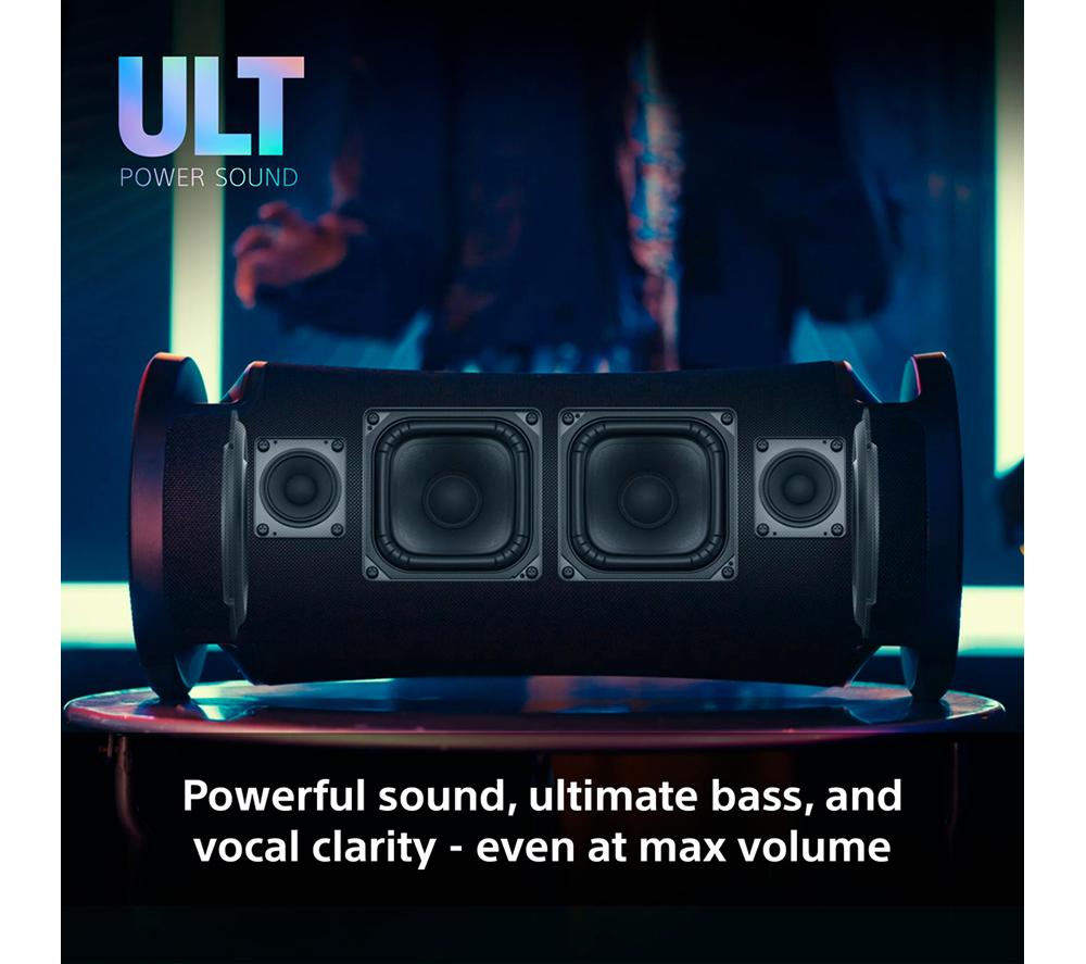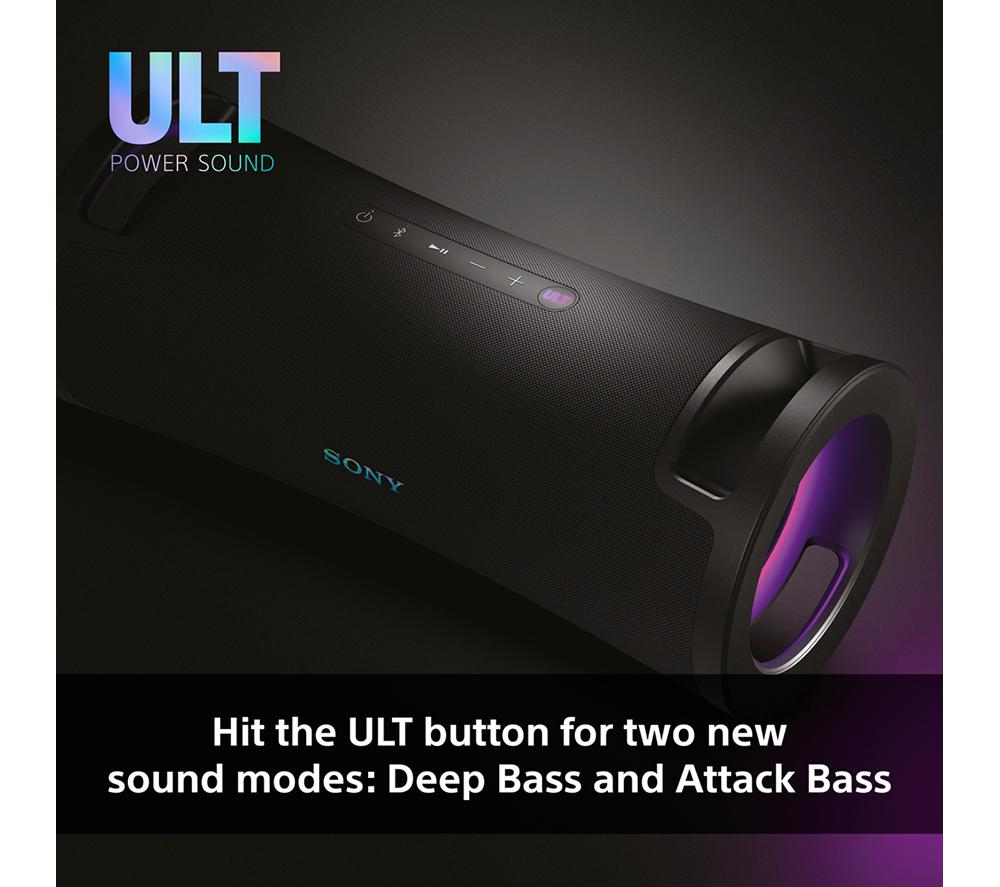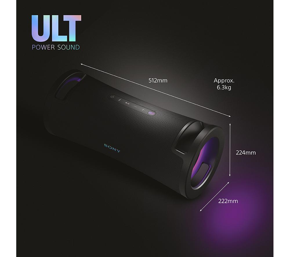 Turn up the volume with the Sony SRS-ULT70 speaker. It's got two X-Balanced Speaker Units that bring out the best of Sony's sound. It's big on bass and clear on vocals, even when you're blasting it at max volume. The ULT button is your key to unleashing two dynamic sound modes: Deep Bass for that rich, earthy undertone, and Attack Bass, to electrify your space with pulsating energy. Perfect for any gathering that needs a soundtrack with impact. Think of Sound Field Optimisation as your speaker's secret sauce. It smooths out the audio to make every track stand out, crystal clear, whether you're surrounded by party noise or the great outdoors.Good to know- It's got up to 30 hours of battery life so you can keep the tunes going from sunrise to sunrise- Need music, like now? A 10-min quick charge will get you another 3 hours of juice- It is waterproof, dustproof, and rustproof, so it's as flexible as your playlist- Light up your night with multi-coloured lighting that dances to the beat of your music- There's a mic and guitar input for impromptu karaoke or jam sessions- Link up to 100 Sony speakers for epic sound and light shows with Party Connect- The Sony Music Center app is your one-stop shop for lighting, speaker pairing, and other settings